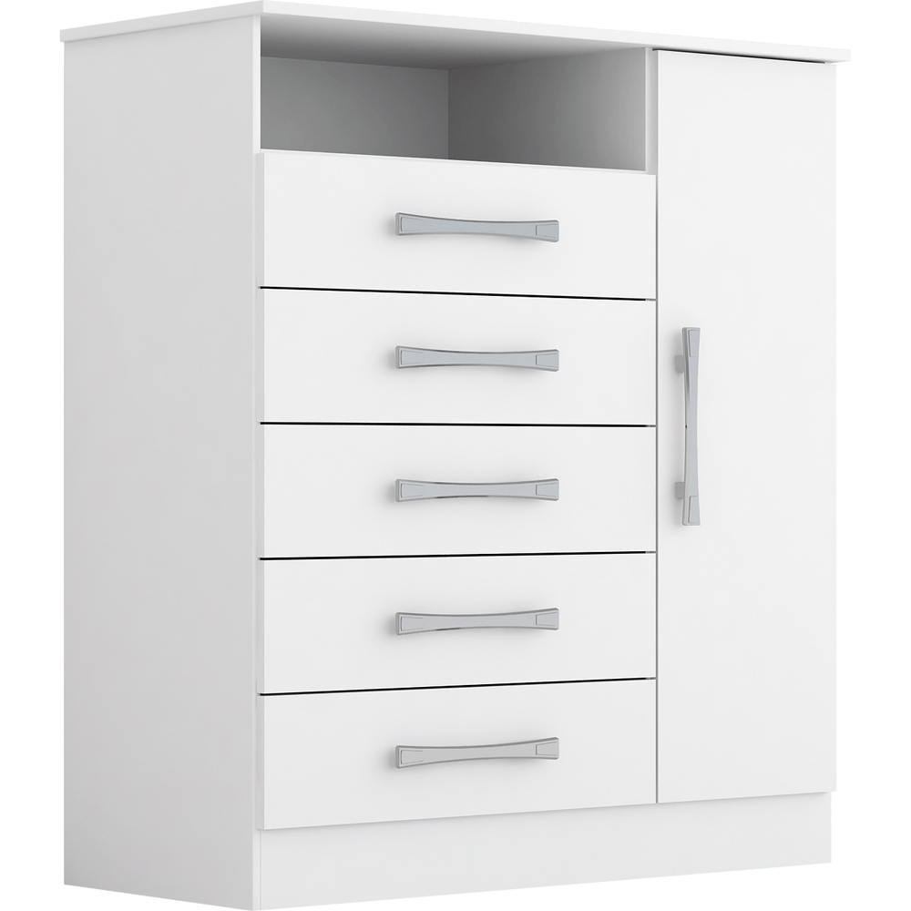 A Cômoda Madri Plus é a escolha perfeita para quem busca organização com elegância. Com cinco gavetas espaçosas e uma sapateira com porta articulada, oferece amplo espaço para armazenar roupas e acessórios. Sua estrutura 100% em MDF confere alta durabilidade e acabamento refinado. Com design moderno e acabamento branco fosco, ela se adapta a qualquer estilo de decoração, sendo ideal para dormitórios que exigem praticidade e sofisticação.