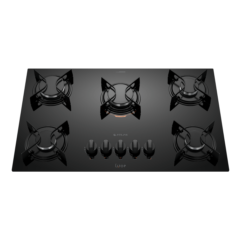 Cooktop 5 Bocas Preto com Mesa de Vidro Atlas U Top