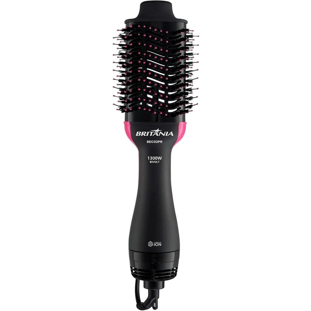 A Escova Secadora Britânia BEC02PR será a sua melhor amiga na hora de cuidar dos cabelos e manter aquele aspecto de salão sem precisar sair de casa. As 3 temperaturas e 2 velocidades, junto aos Íons Tourmaline, garantem maior eficiência na hora de secar, alisar, modelar ou dar volume aos fios. Com o revestimento do tubo em cerâmica e o cordão giratório 360° com 1,80m você tem fios mais hidratados e com maior liberdade de movimento durante o uso. A Escova Secadora Britânia BEC02PR é bivolt e conta com 1300W de potência, assim, você pode levá-la para onde for e ter seus cabelos sempre bem cuidados, do jeito que você quer, mais rapidamente.