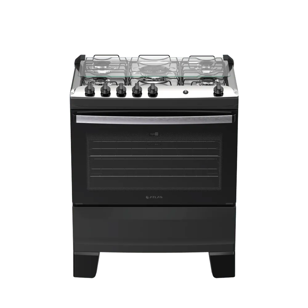 Fogão 5 Bocas Atlas Agile Up Preto com Mesa Inox Bivolt – Laser Eletro