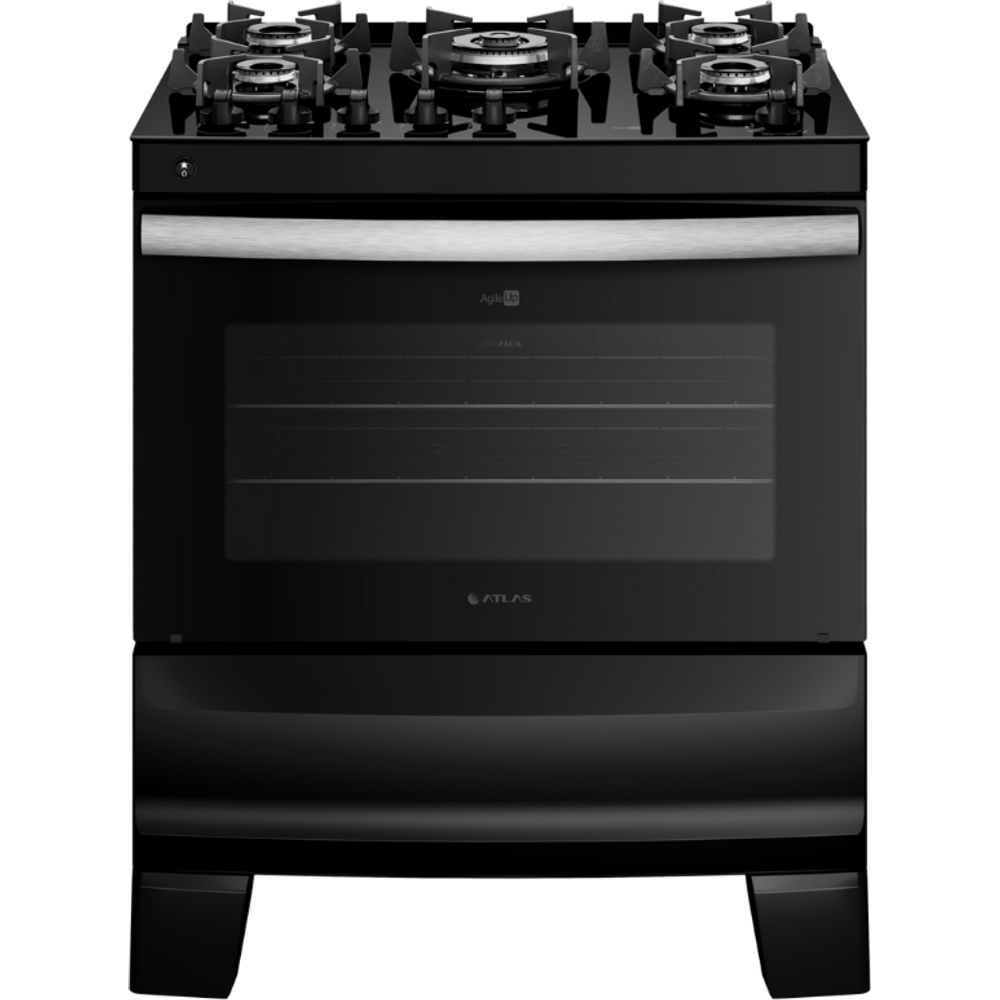 Fogão 5 Bocas Preto com Mesa de Vidro Atlas Agile Up