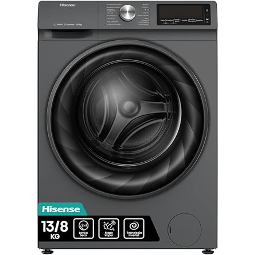 A Hisense WD5Q1342BT2 combina lavagem de 13 kg e secagem de 8 kg,