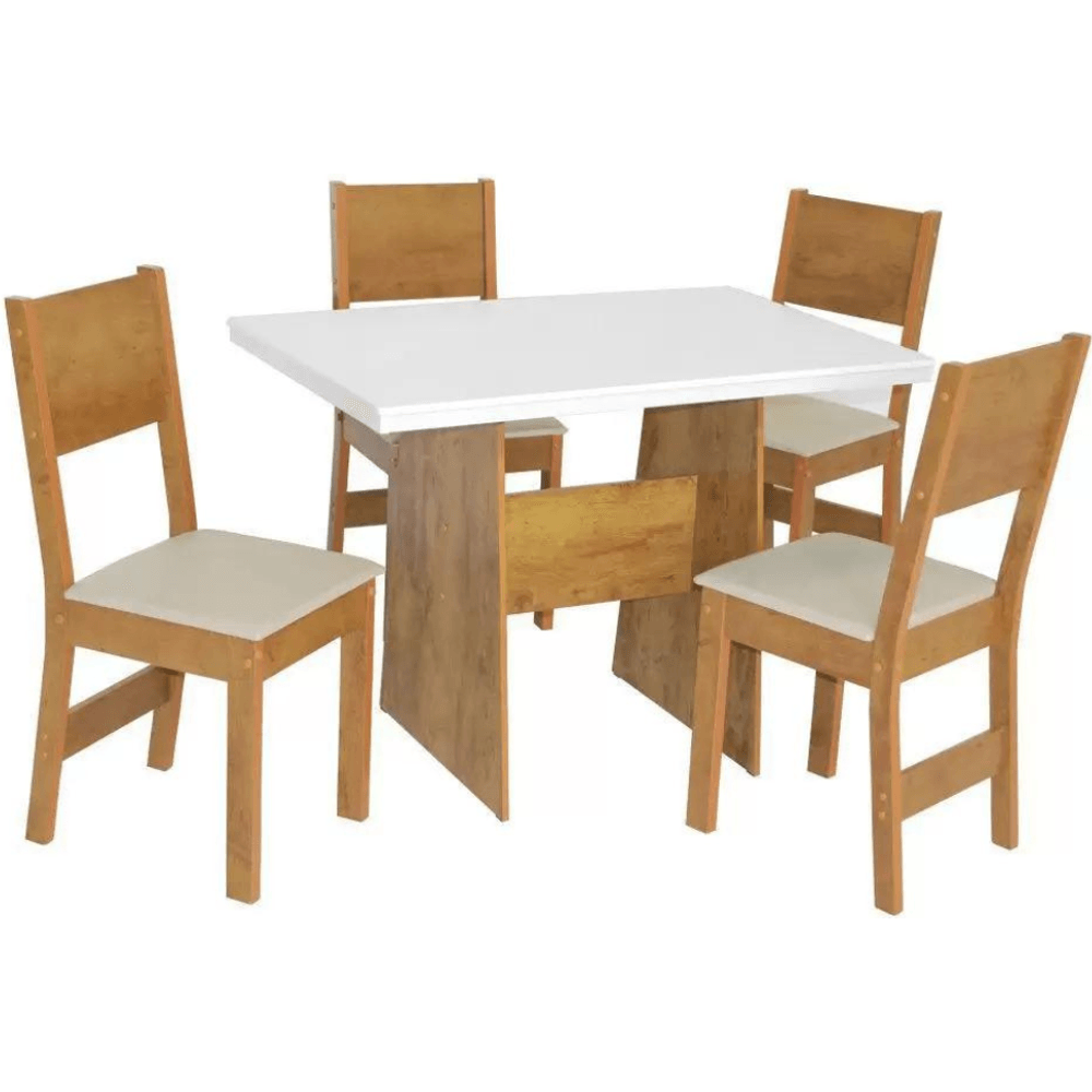 Mesa São Carlos Bianca com 4 Cadeiras, Retangular, Cor Freijó/Off White