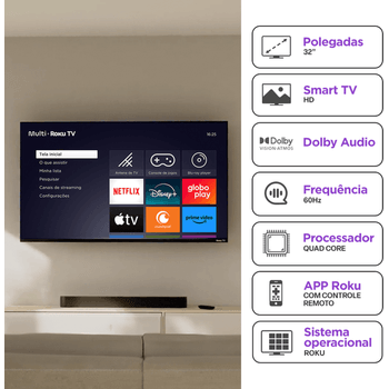 - Conteúdo da Embalagem: 1 Smart TV, 1 Controle Remoto, 1 Manual de Instruções